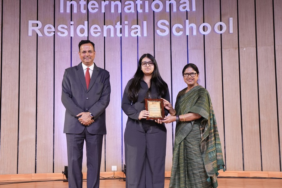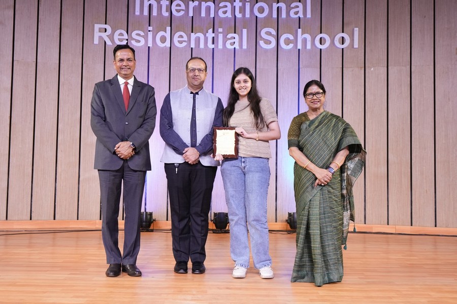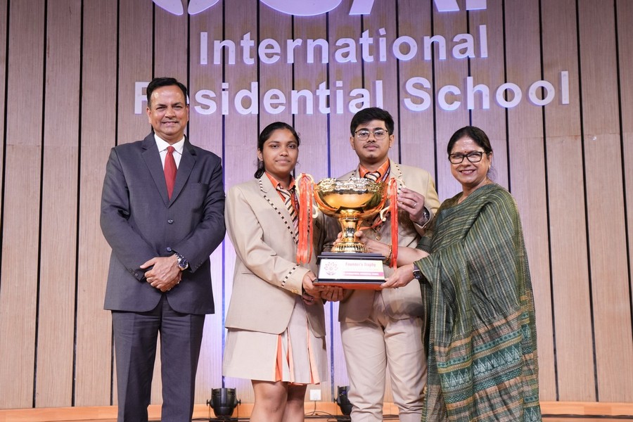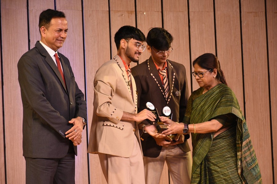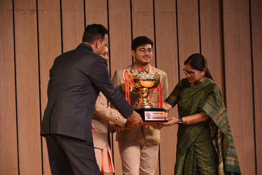The Founder’s Awards were graciously presented by the Chairperson, honouring outstanding student achievements across academics, debating, leadership, and co-curricular domains. The House Awards celebrated collective excellence, with Chakra House emerging as both the Academic House Champion and Overall House Champion. The Cultural House Trophy was jointly awarded to Vajra House and Dhvaja House, acknowledging their exceptional contributions in the cultural sphere.
