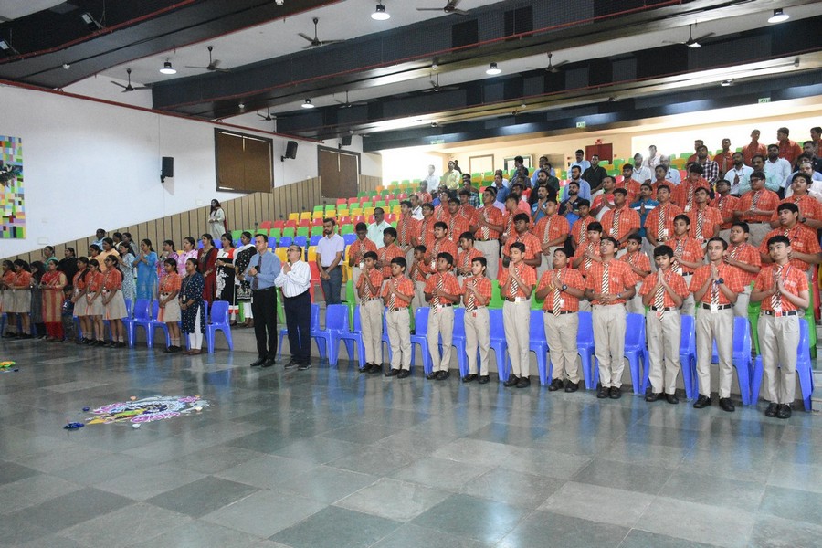The festive spirit of Diwali filled the air at SAI International Residential School as students and staff came together for a vibrant special combined assembly on October 18, 2025, celebrating the festival of lights with immense zeal and joy.